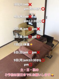 さて、今週は事前予約がかなり増えており、当日のご予約が難しいかも…という感じです💦