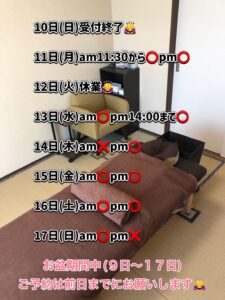 お盆期間中17日(日)までは、平日でも前日までに予約をお願いします🙇♀️