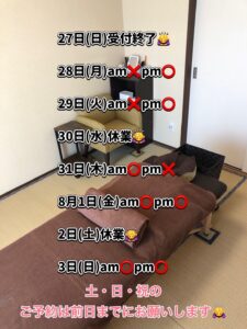 ※ちらほらお盆の営業を聞かれるようになりましたが、8/12のみお休みをいただこうかなと思っております。