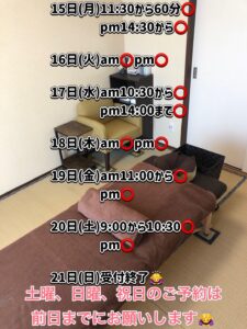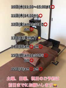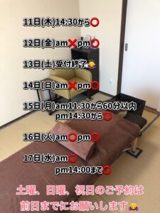 2025.12.11 本日、空き枠14:30から1名のみです🙇♀️