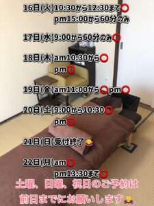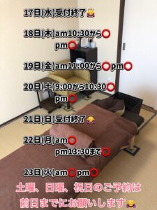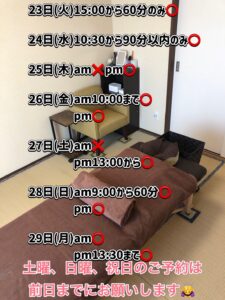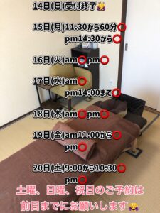 おはようございます(^^)本日の空き枠が14:30から1名様のみとなりました🙇♀️12月、疲れた体で年越しはちょっと…なお客様が増えます