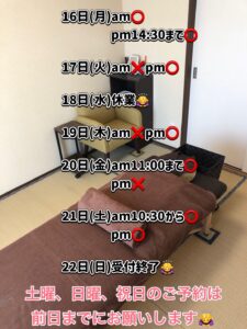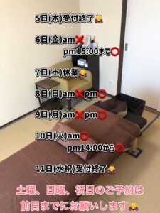 2026.1.30 本日、明日、明後日、予約受付終了です♀️